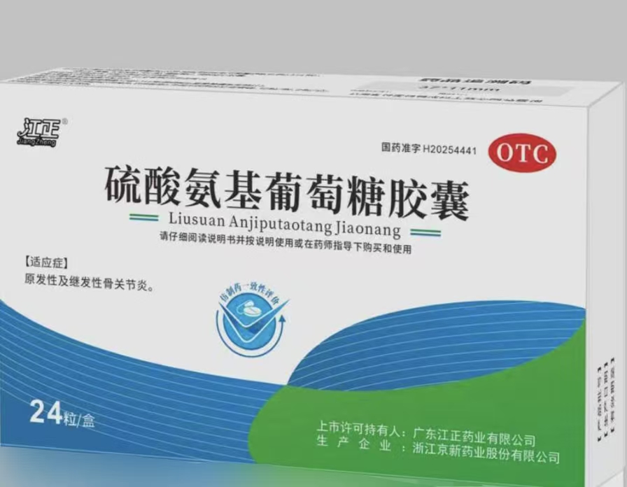 成份:本品每粒含硫酸氨基葡萄糖0.25克(相当于硫酸氨基葡萄糖氯化钠0.314克)。辅料为:乳糖、玉米淀粉、滑石粉、硬脂酸镁、明胶空心胶囊。
